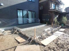 新築住宅外構・駐車場コンクリート・ブロック積み・アルミフェンス・タイル貼り・石灰砂利敷き・植栽・その他