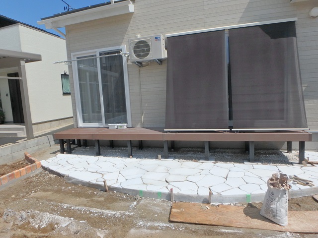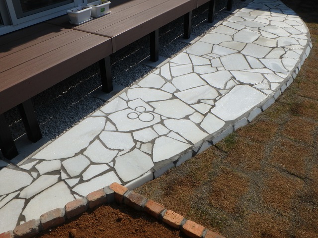 天然石(ホワイト)乱形の布設もキレイに完成しました。