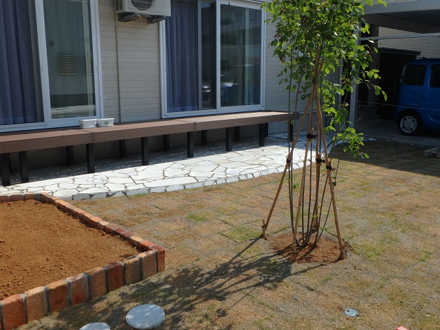 植栽に芝張り、お庭がとても感じよく完成しました。