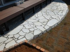 乱形石貼り・中古レンガ・植栽・芝貼り・石灰石砂利