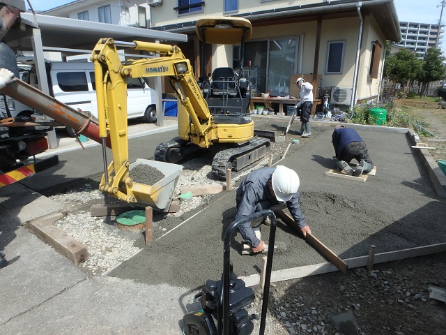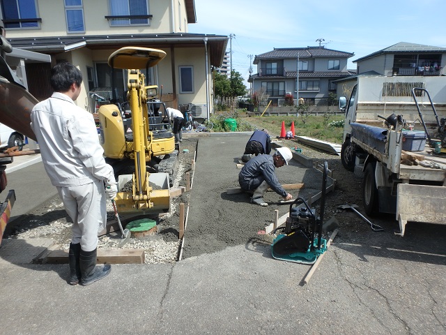 新築住宅外構・駐車場コンクリート・ブロック積み・アルミフェンス・タイル貼り・石灰砂利敷き・植栽・その他